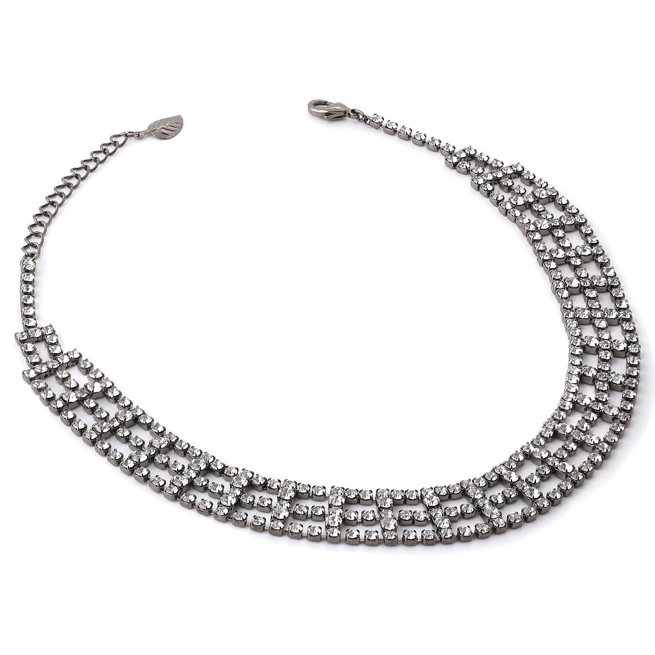 Brass Crystal Rhinestone 3 Row Strand Choker