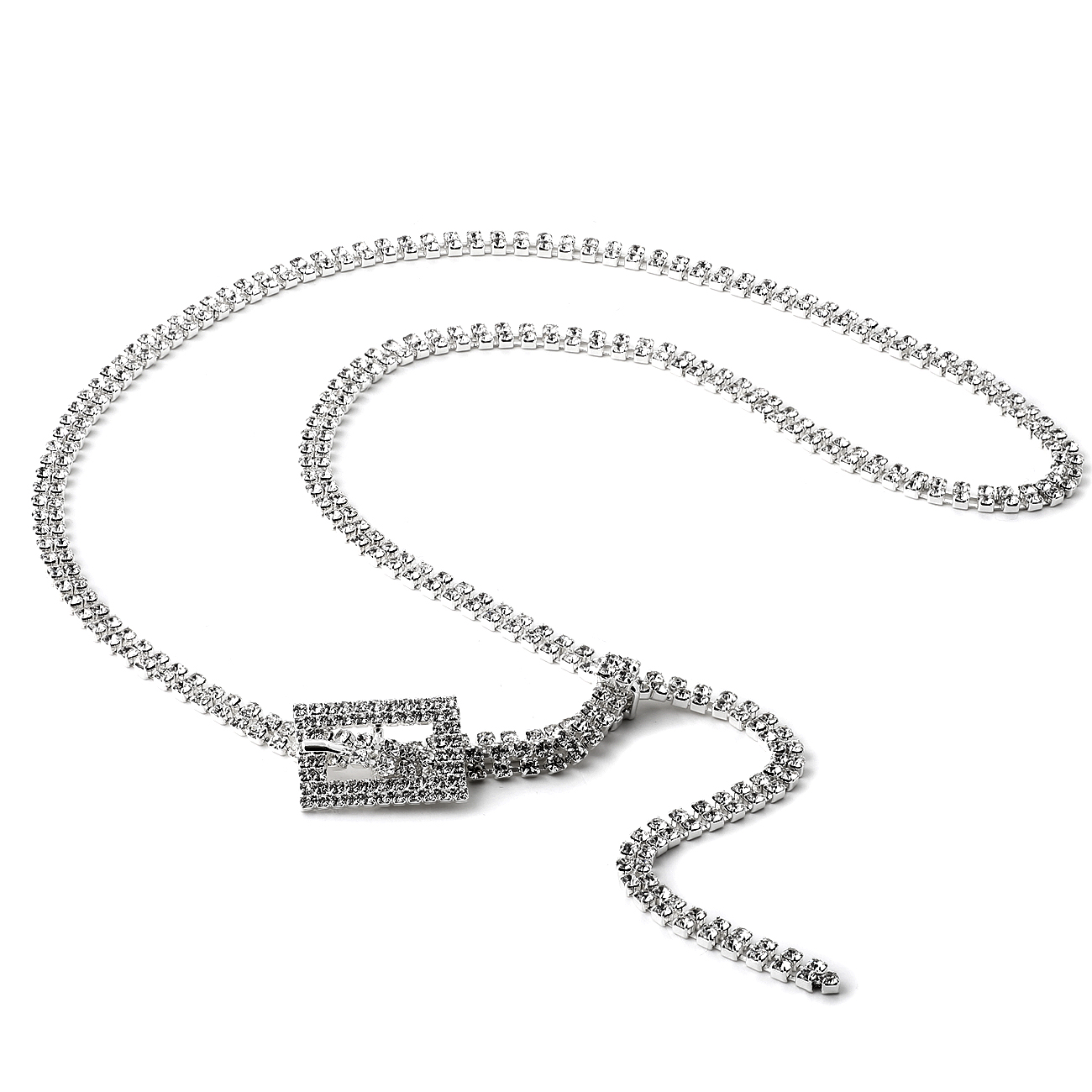 Silver Crystal Rhinestone Double Line Belt with Small Rectangle Buckle