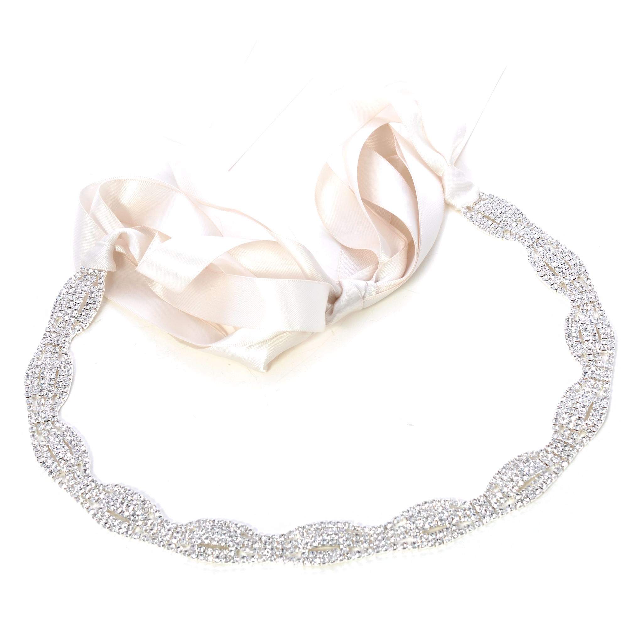 (59181-100) Wedding Bridal Belt Braided Rhinestone Sash Belt