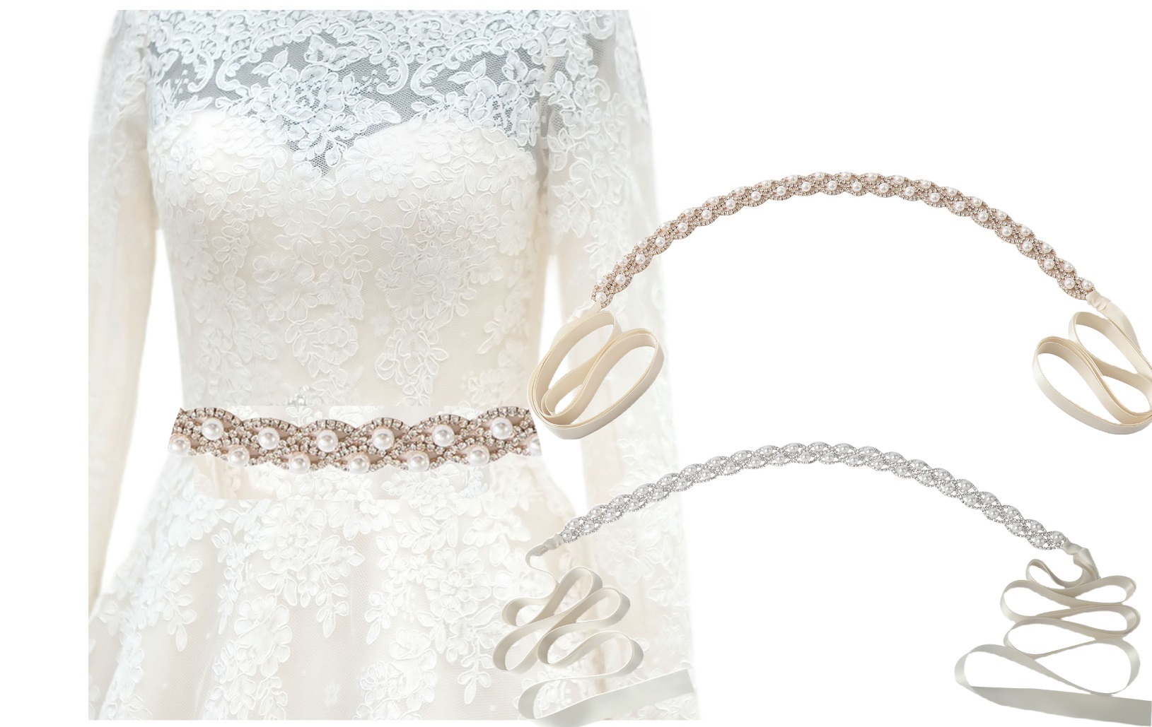 Gold Pearl Crystal Sash Belt 18.50×0.79″