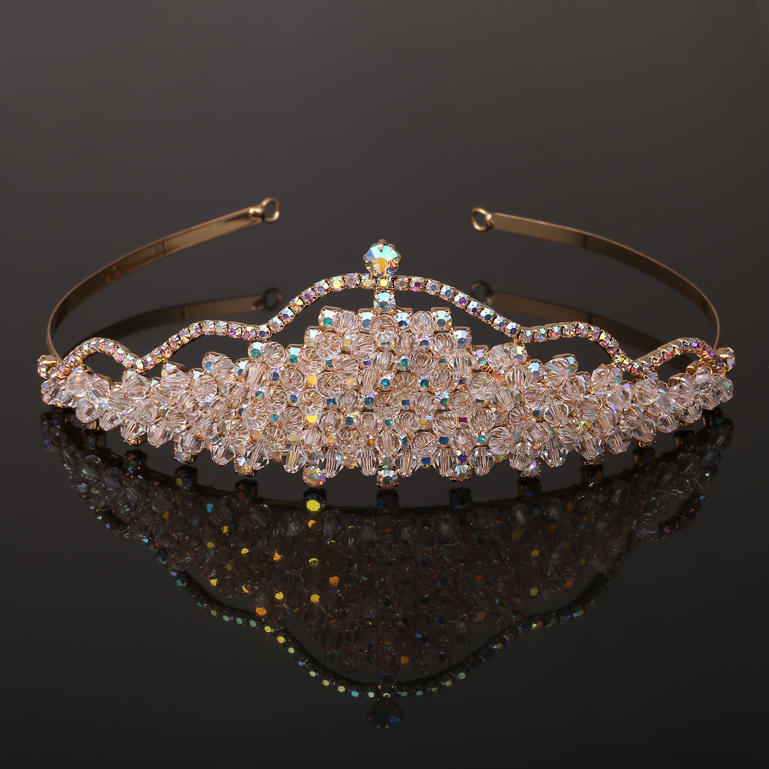Wedding Jewelry Gold Plating Aurora Borealis Stone Princess Tiara