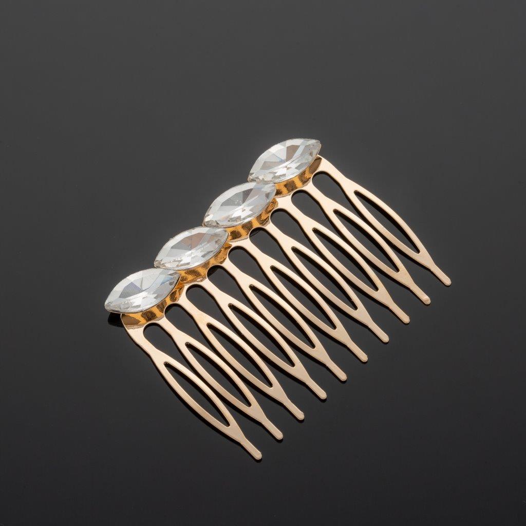 Introducing the Gold Clear Hair Accessory, the crowning glory of your hairstyle! This little gem is what your locks have been missing all along. With its crystal-clear stones and dazzling gold accents, this hair accessory is a shining star in the world of fashion.