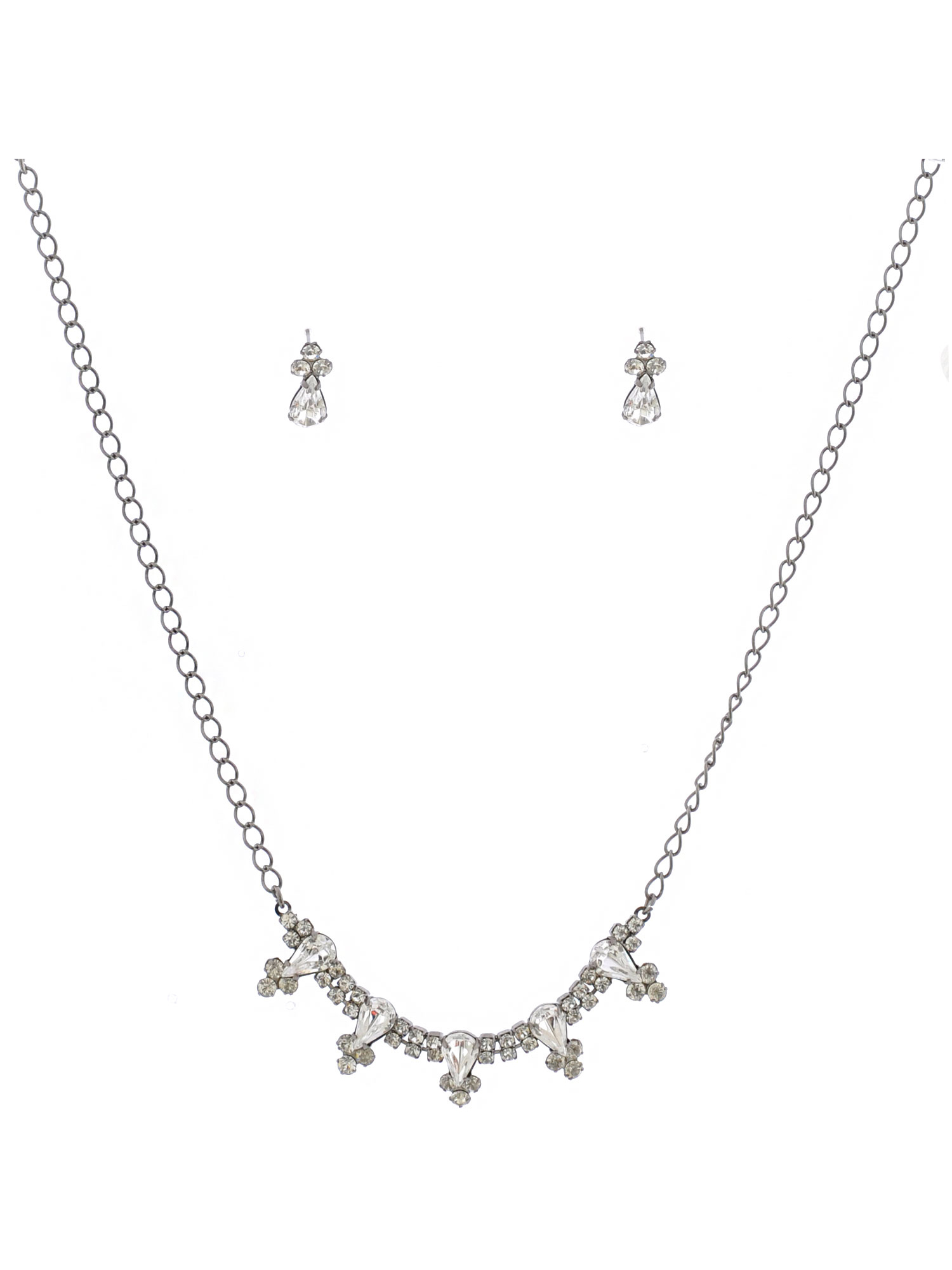 Fashion Jewelry Set Brass Rhinestone Necklace Earrings Set