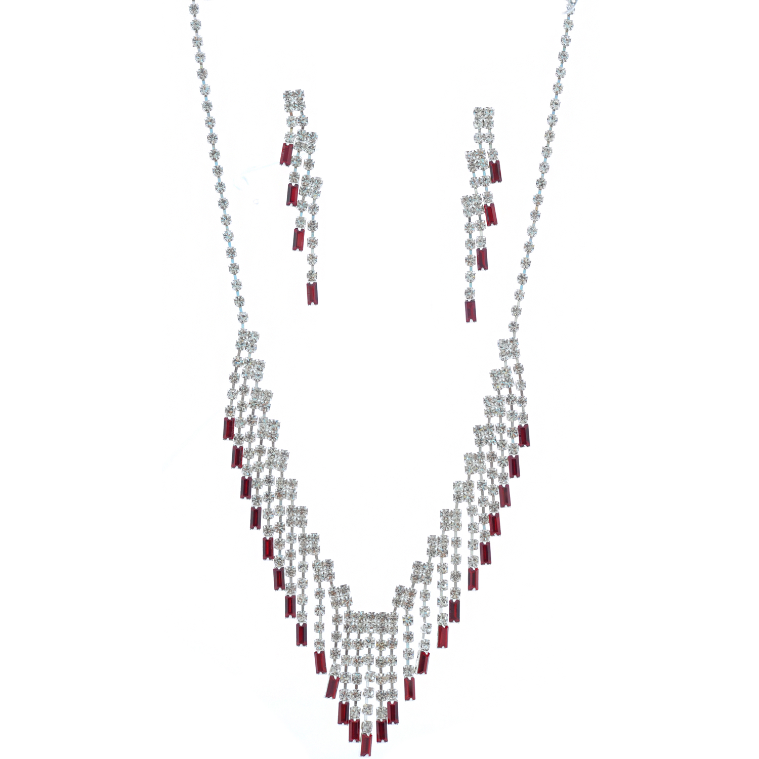 Bridal Jewelry Set Silver Siam Chandelier Necklace Earrings Set