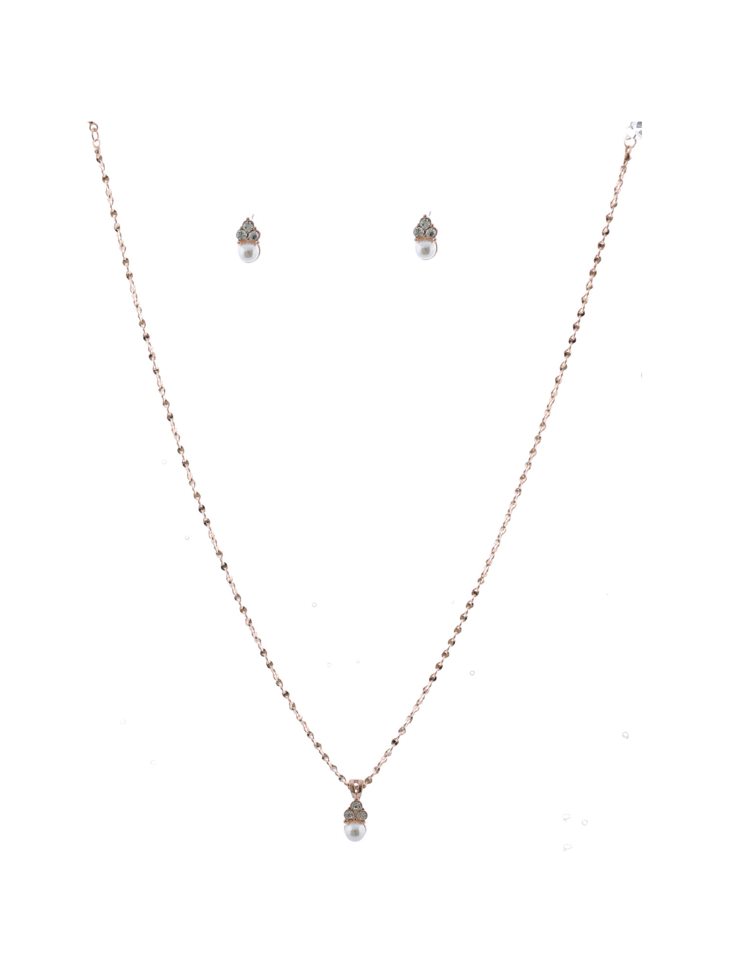 Wedding Jewelry Set Rose Gold Plating Faux Cream Pearl Necklace Earrings Set
