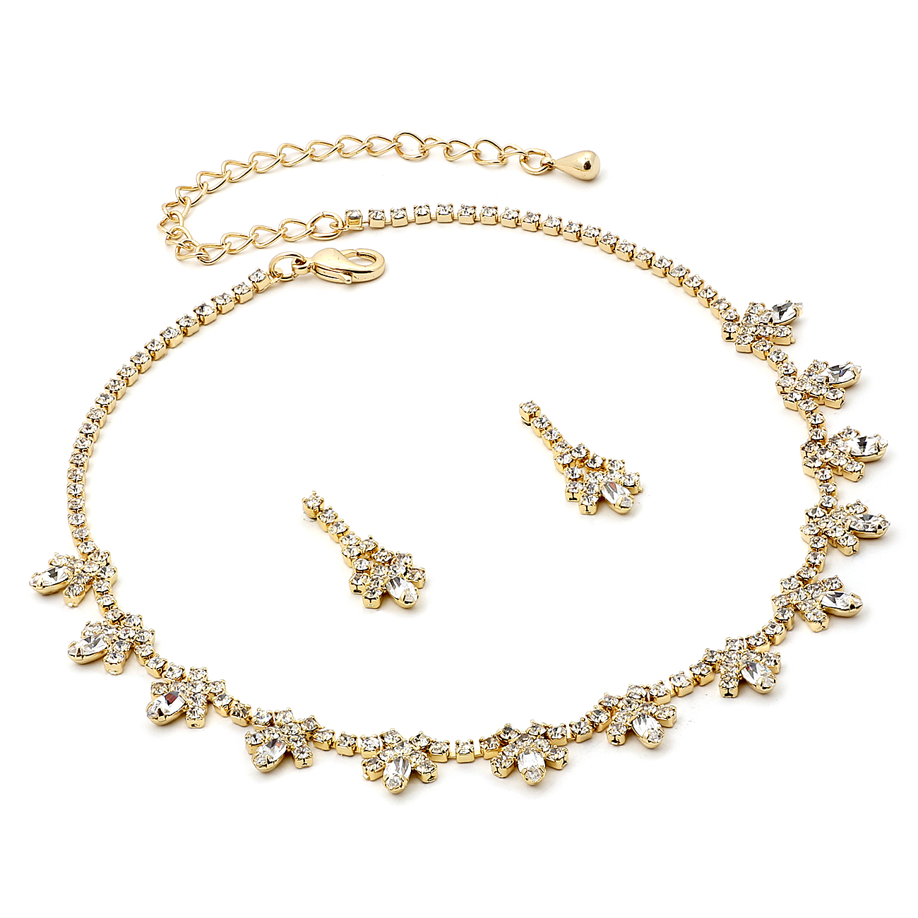 High quality gold plating,The necklace measures approximately 12.5″ long with a 3.5″ extender chain for just the right fit,The matching earrings measure 1.0″ long,It is perfect for weddings,, proms,, formals,, parties,, pageants,, and more,This set coordinates with any color or style casual look or formal ensemble