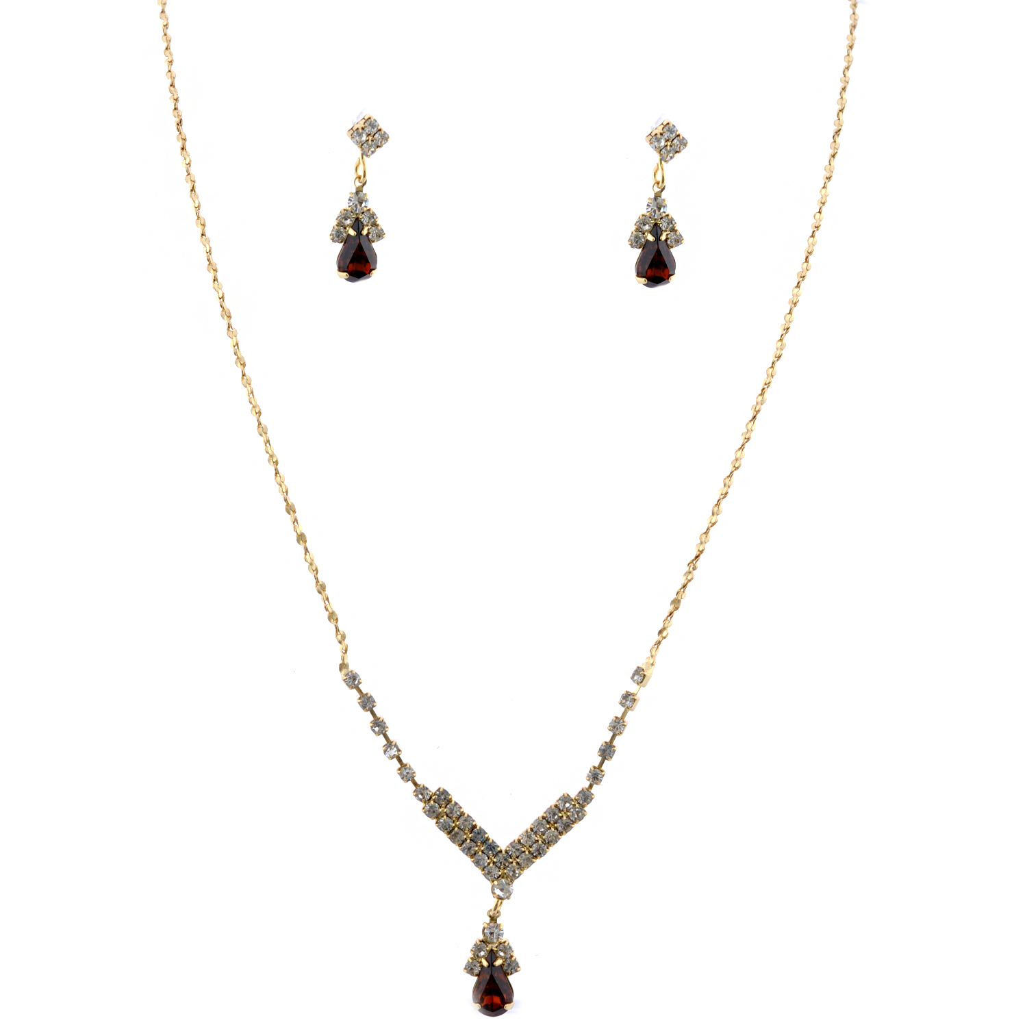 Introducing the fabulous and oh-so-gorgeous Gold Smoked Topaz 19.5″ V Shape Necklace with Teardrop Dangle Earrings Jewelry Set from Topwholesalejewel.com – your go-to online fashion jewelry store for all things trendy and fabulous.