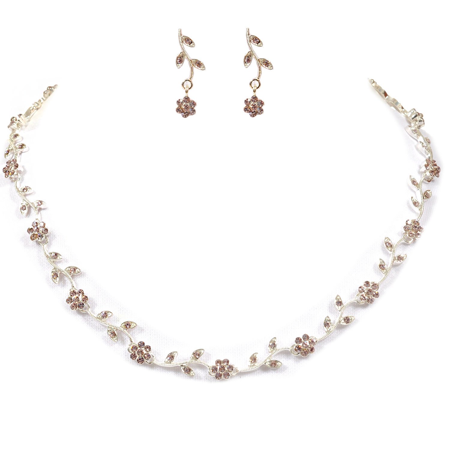 Bridal Jewelry Set Silver Light Amethyst Flower Necklace Earrings Set For Wedding
