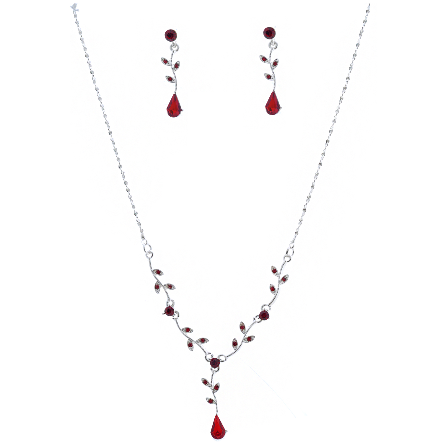 Bridal Wedding Jewelry Set Light Siam Rhinestone Necklace Earrings Set