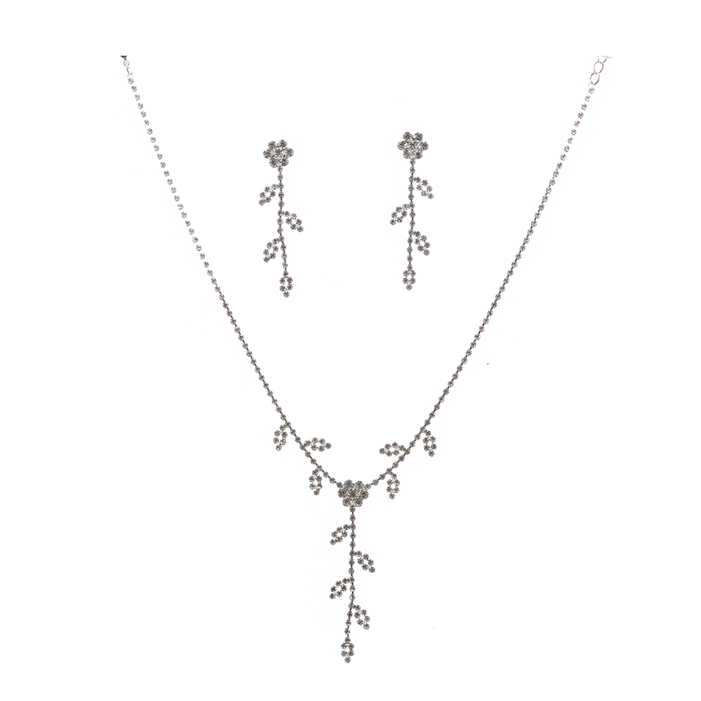 Wedding Jewelry Set Silver Plating Crystal Rhinestone Flower Leaf Necklace Earrings Set