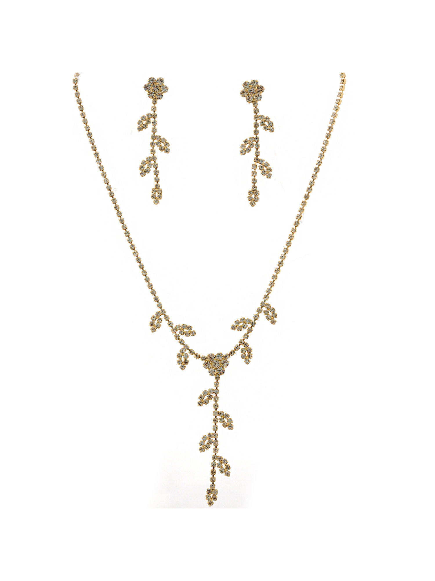 Wedding Jewelry Set Gold Crystal Flower Leaf Necklace Earrings Set