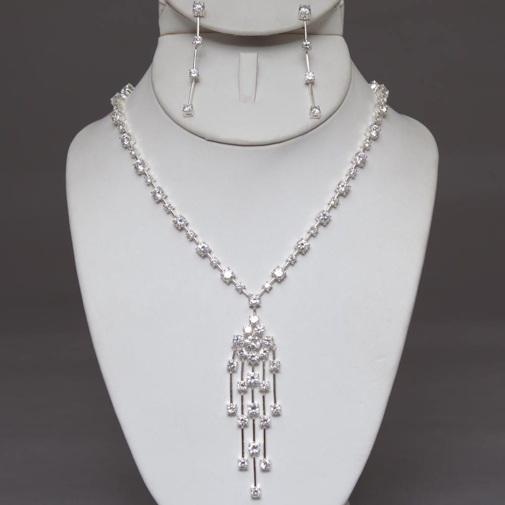 Silver Crystal Square Circle Set
