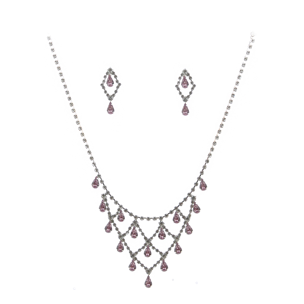 Wedding Jewerly Set Silver Plating Light Amethyst Chandelier Necklace earrings Set