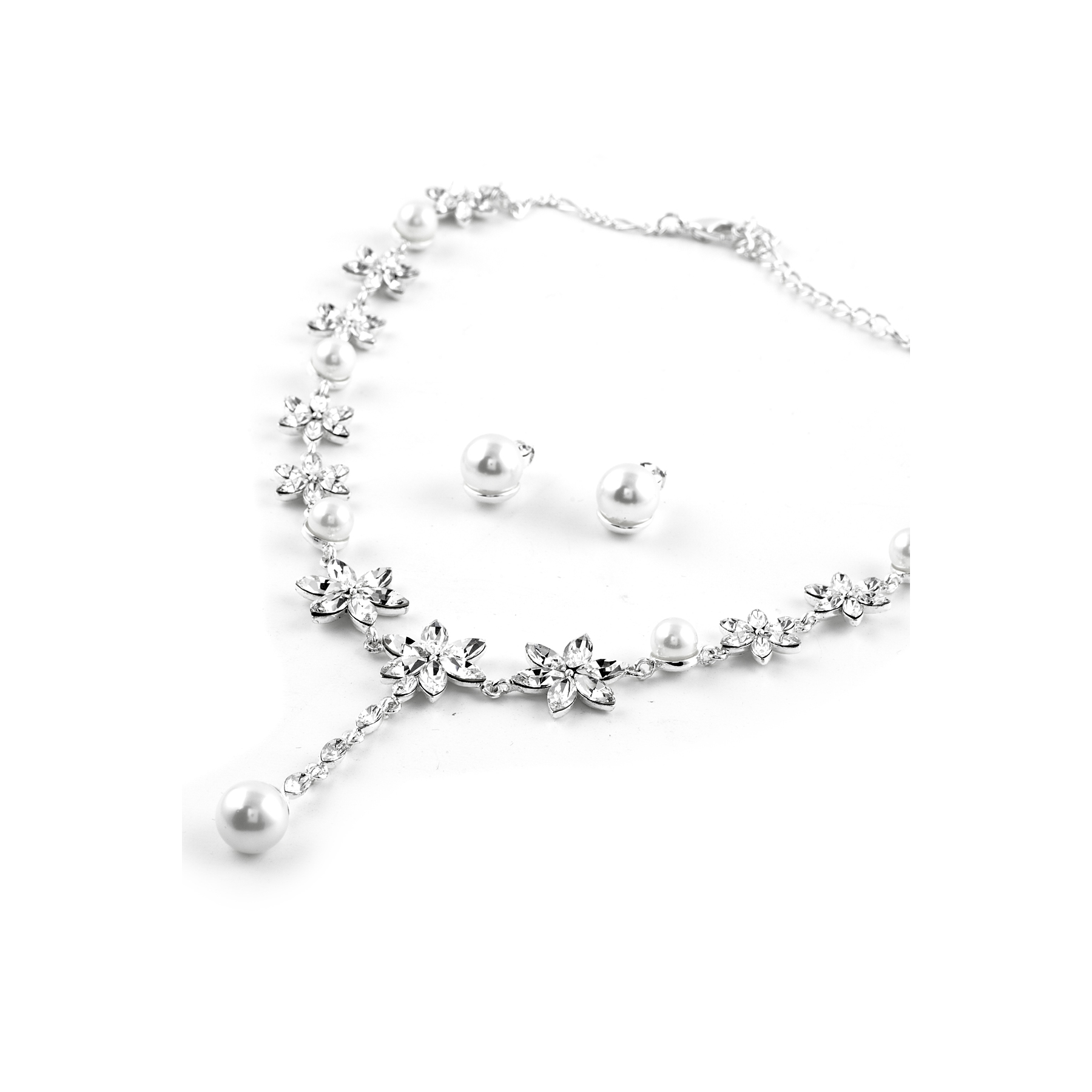 Silver White Pearl & Flower Set