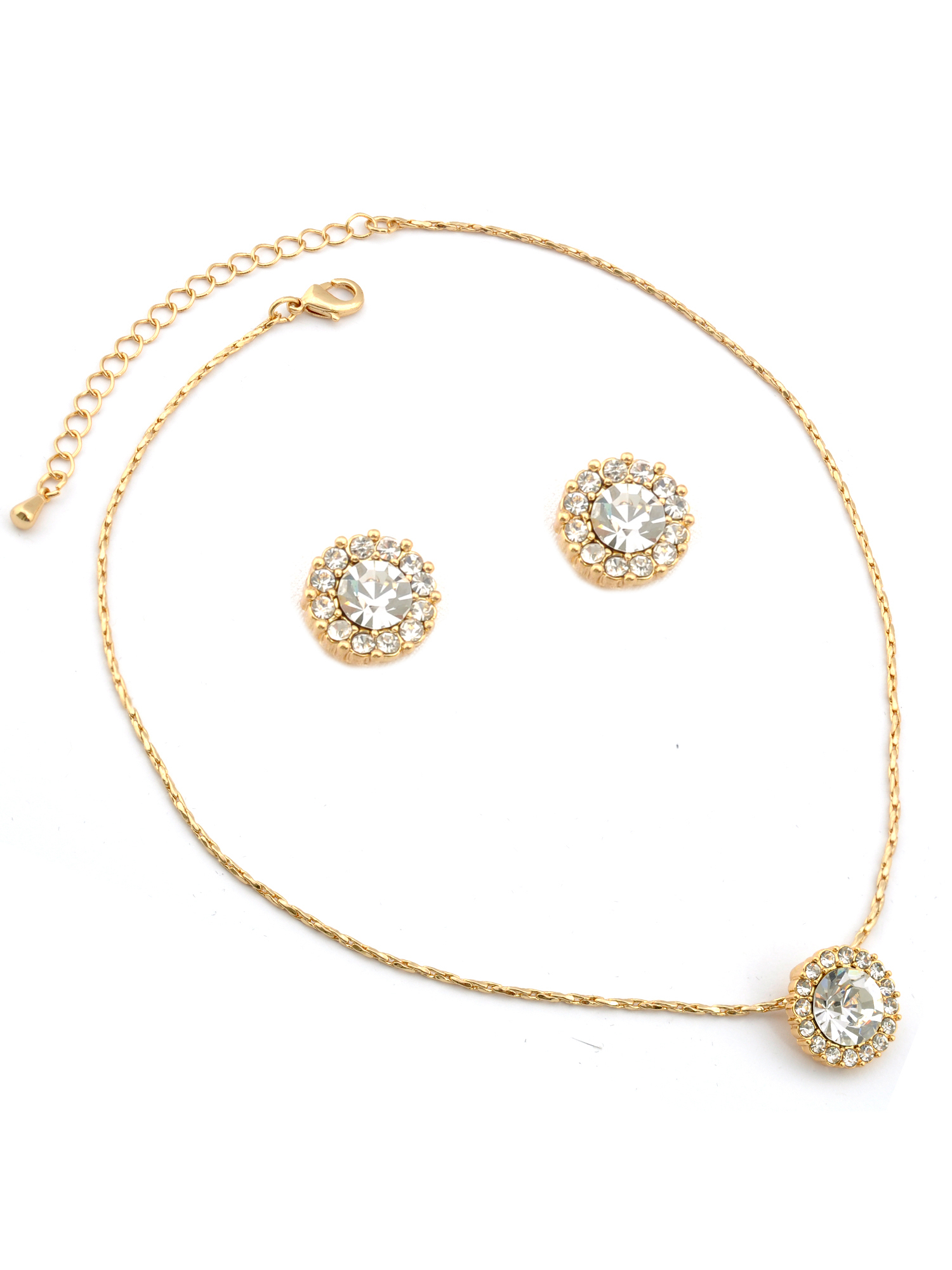 Wedding Jewelry 15″ Plus 4″ extender Set Gold Crystal Round Pendant Necklace Earrings Set