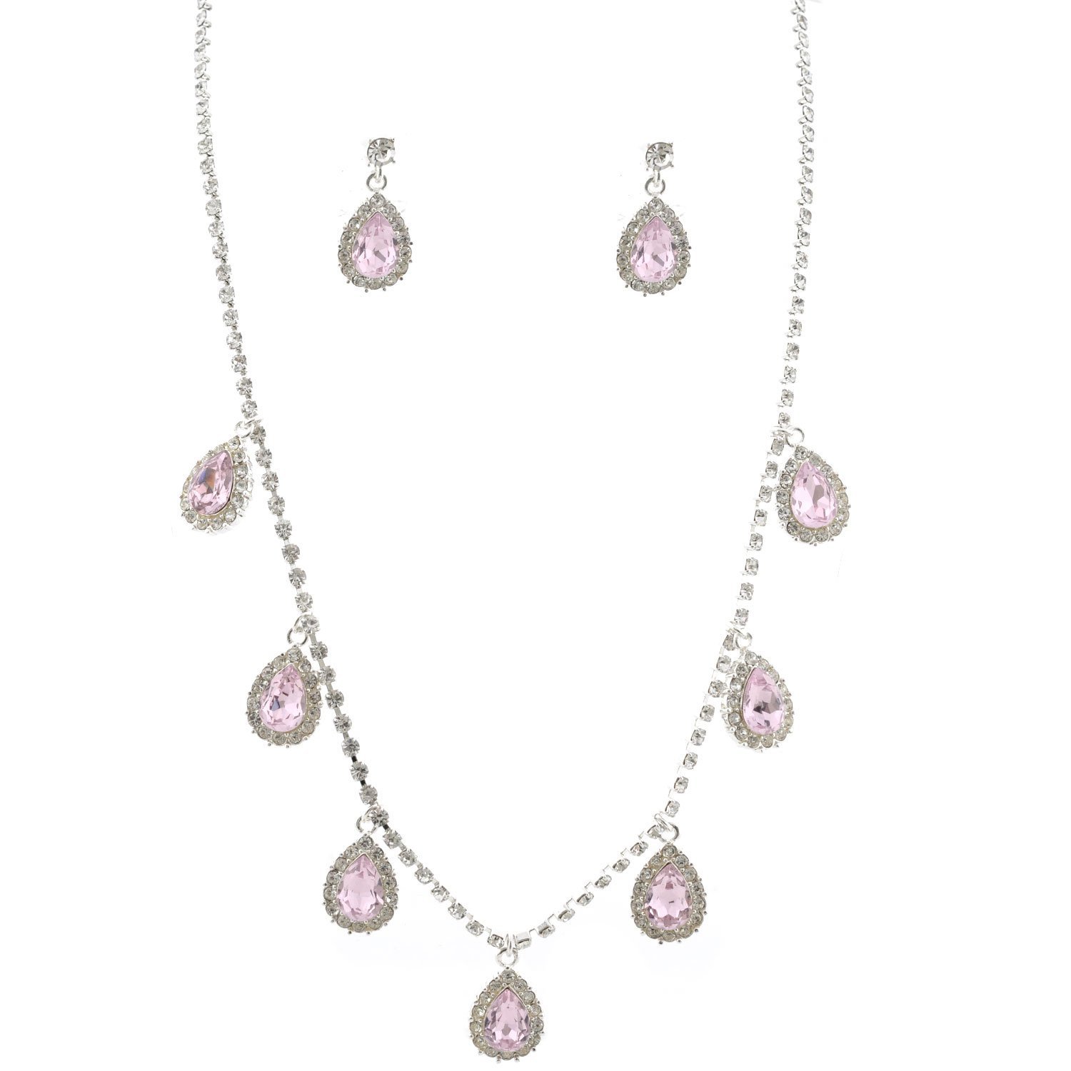 Fashion Jewelry Set Silver Plating Light Rose Necklace Earrings Set