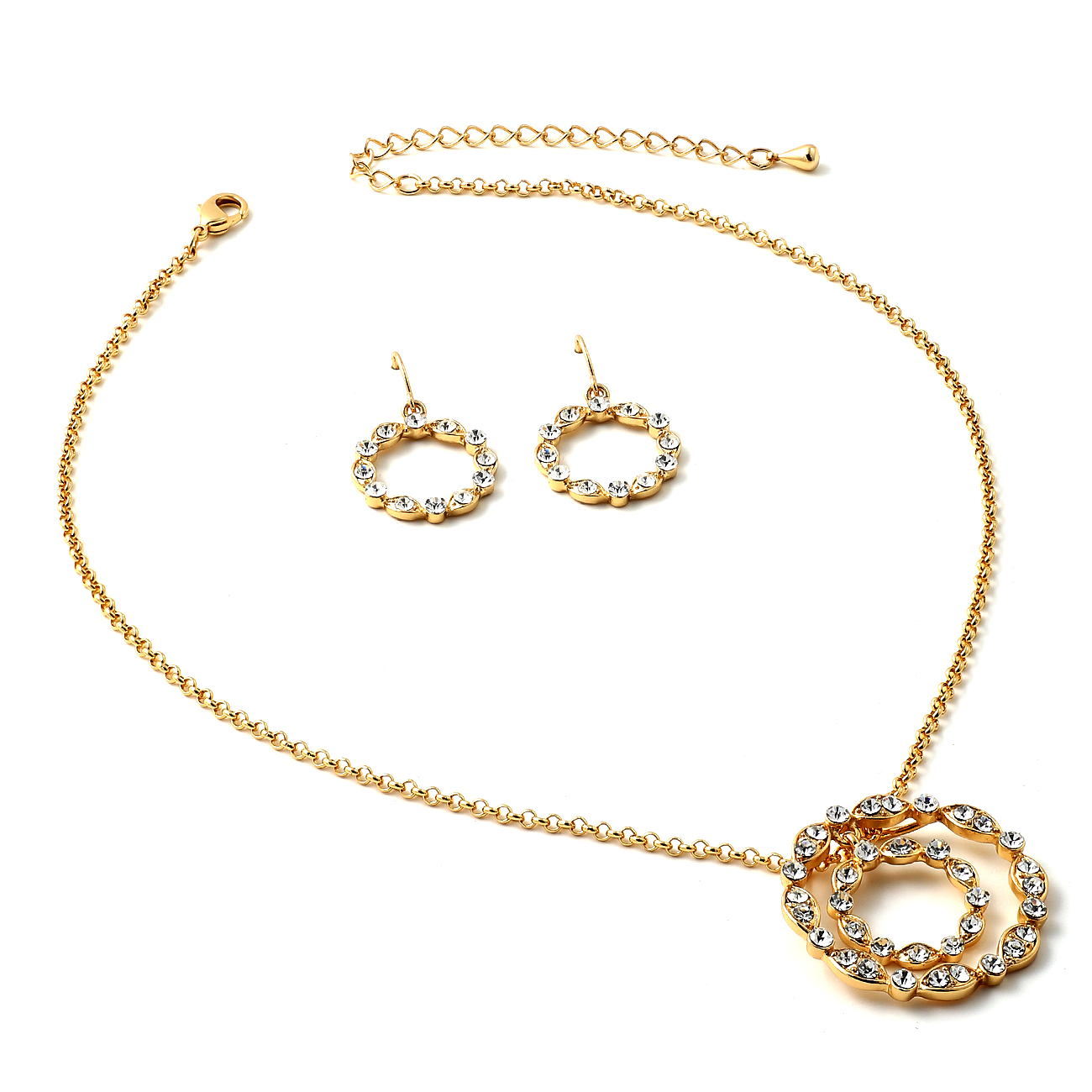 Gold Chain Necklace with Crystal Rhinestone Fancy Circles and Matching Wire Earrings Jewelry Set