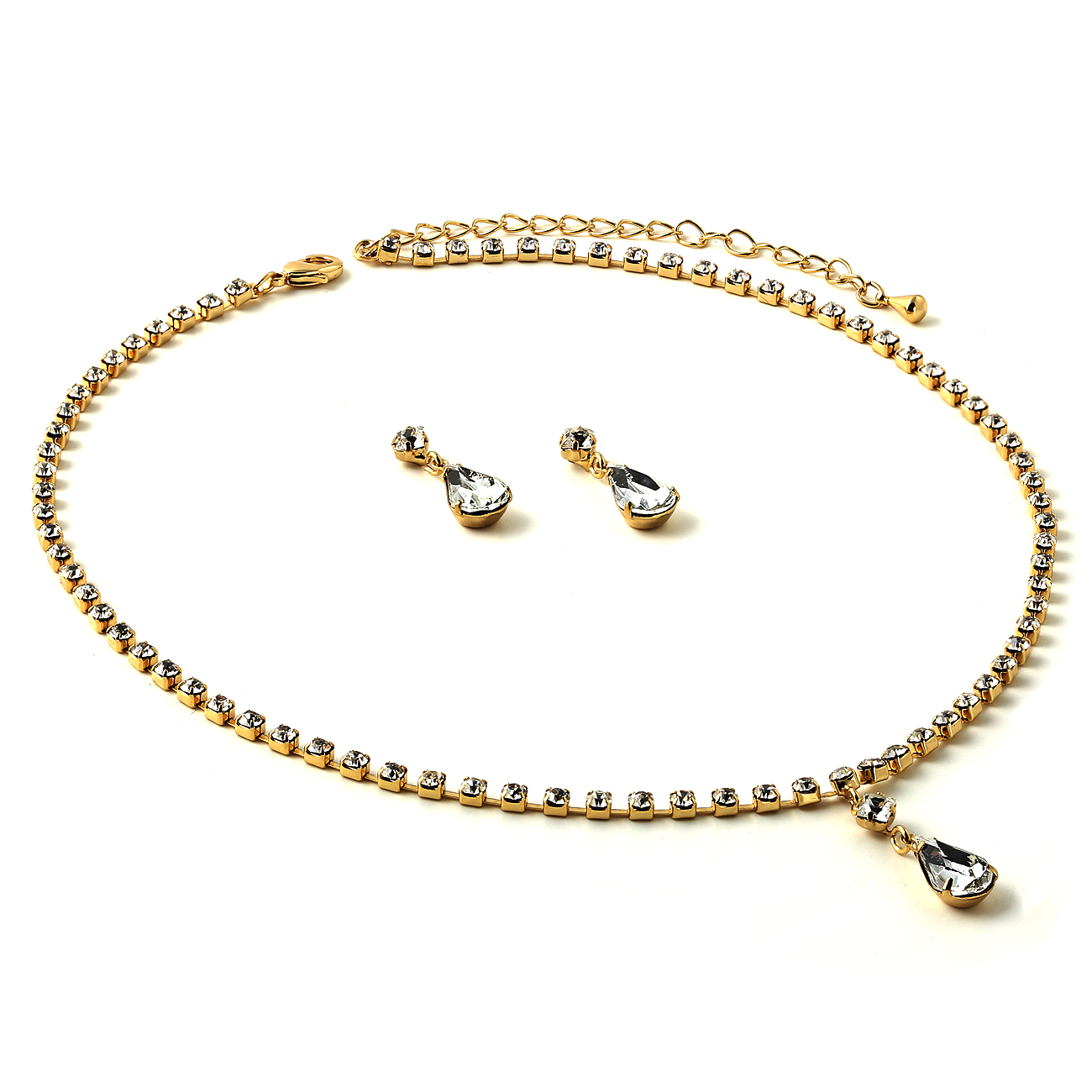 Gold Crystal Rhinestone with Dangle Crystal Teardrop Stone Necklace and Matching Jewelry Set