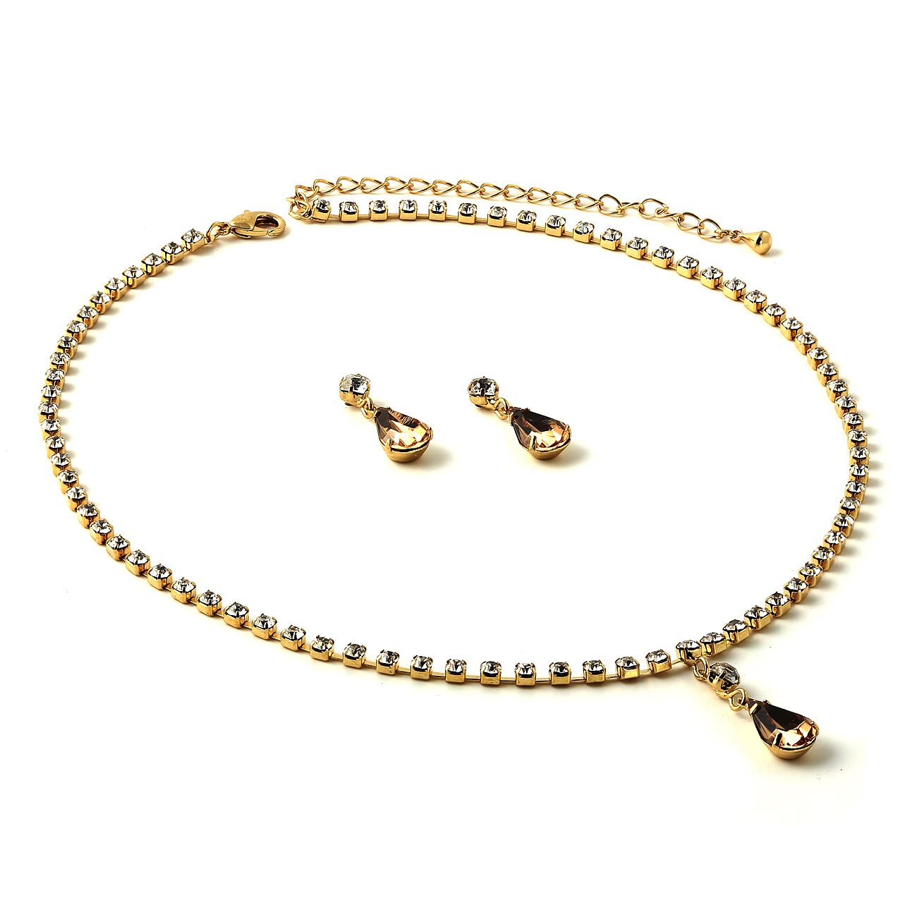 Gold Crystal Rhinestone with Dangle Light Colorado Topaz Teardrop Stone Necklace and Matching Jewelry Set