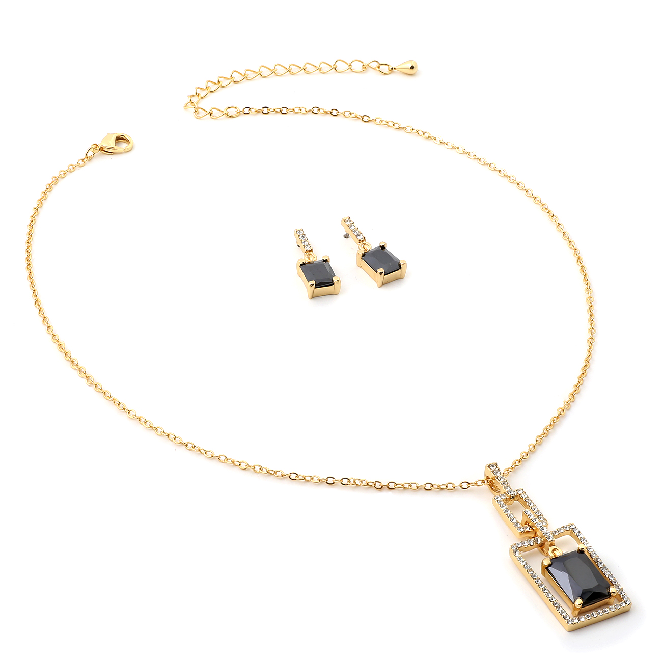 Gold Crystal Rhinestone with a Jet Baguette Cubic Zirconia Necklace and Matching Dangle Earrings Jewelry Set