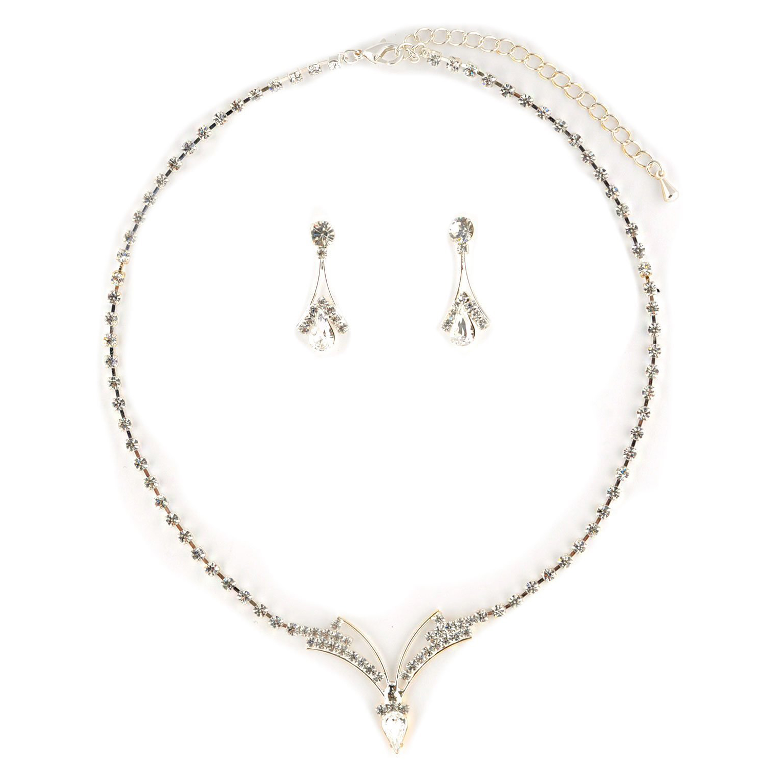 Jewelry Set V Necklace Stud Earrings Crystal Rhinestone Silver Crystal Pear
